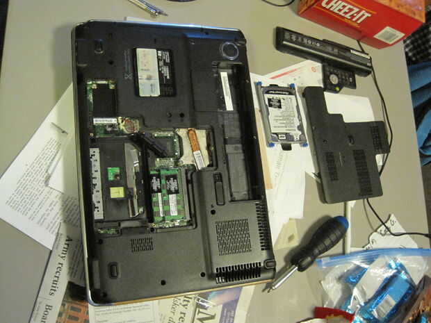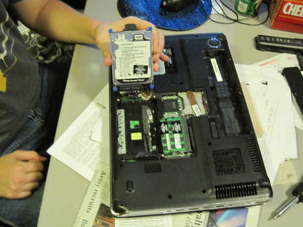 Una vez la tapa fuera, el disco duro debe ser capaz de quitar. Uno de los extremos de la unidad debe ser totalmente libre y el otro debe fijarse por un solo enchufe. Desconecte el enchufe y coloque el disco duro a un lado.