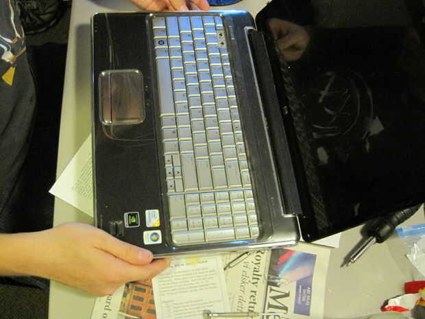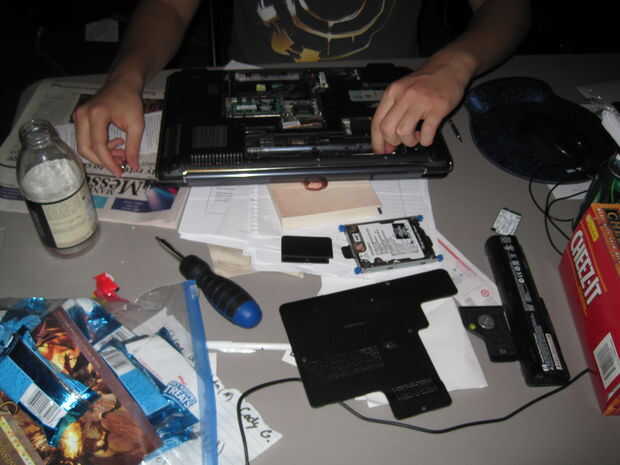 Una vez que todos los tornillos están fuera, voltee el equipo.