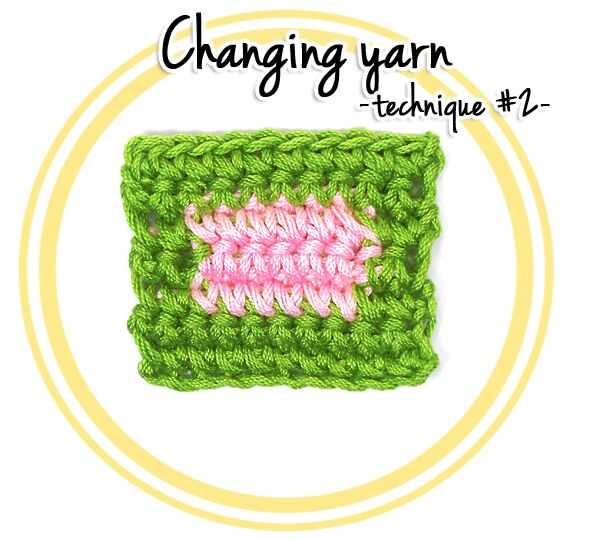 cuando necesite cambiar el color o añadir más hilo, he encontrado una gran transición que es apenas perceptible. En el último paso de una puntada, hilado del lazo nuevo en gancho y a través del último paso. Tus puntadas de ganchillo sobre los dos ext