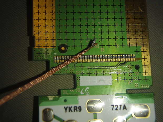 Ahora usted tendrá que usar soldadura mecha para cuidadosamente quitar residuos de cobre los viejos escombros de FPC de lo PCB. Tener una lupa y destornillador ayuda aquí, tenga cuidado de no dejar fragmentos o se corta hacia fuera más adelante y causar problemas.