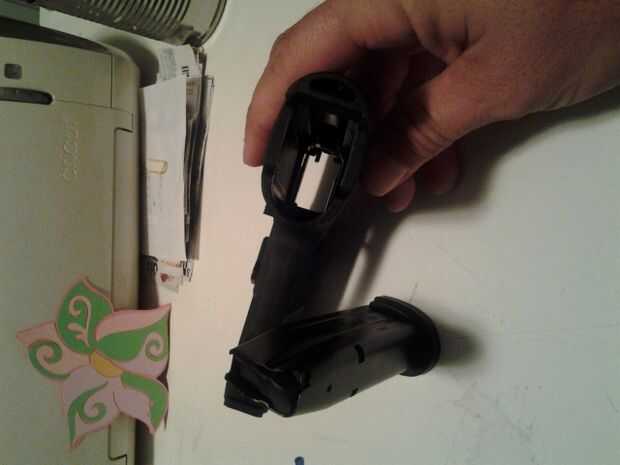 Primero encontrar un ambiente de trabajo seguro, libre de distracciones y manos tirantes. A continuación si la pistola está cargada descargarlo, si no Verifique su descarga. Ahora bien, este paso es muy importante.. .make que el arma no está cargada. Para hacer este jale hacia atrás la corredera y bloquéela lugar, ahora sacar la revista, finalmente, inspeccione visualmente la camara para su no rondas están presentes. Ahora que eres que el arma esté descargado podemos pasar al paso dos.