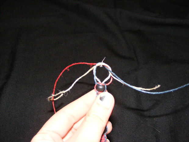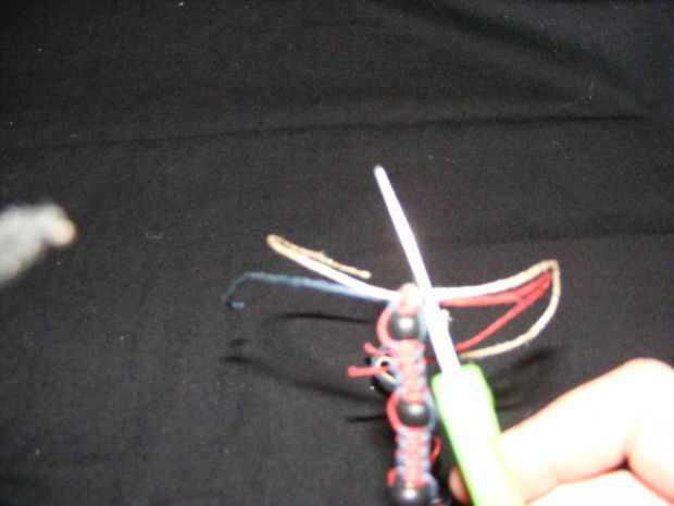 Si utiliza una tira un nudo más bajo toma una cadena larga en una mano y dos en el otro y atar dos slip thenpull de nudos (nudos de la abuela) realmente apretado y corte off extra. para sellar el nudo con el pulimento claro de la pintura, dejarlo seco y listo! Ahora puede adornar a sí mismo con este trabajo de arte creativo funky!