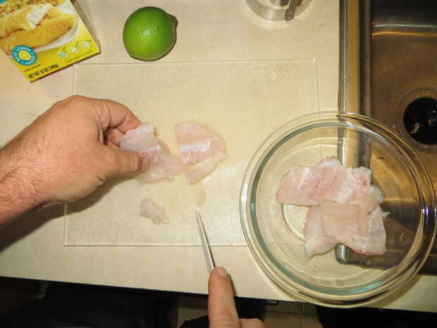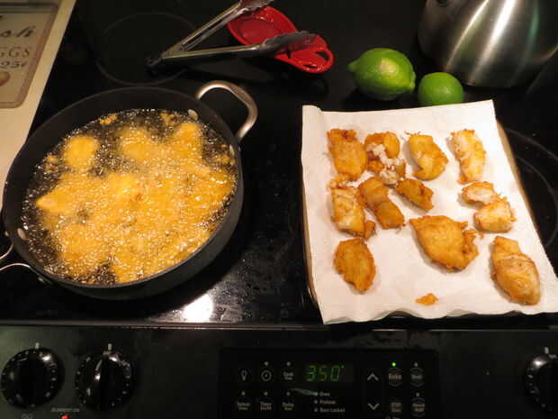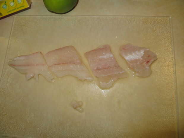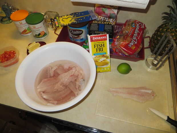 Ahora a mi parte favorita, el cocinar y comer la porción! Con estos dos peces tengo filetes de ocho, que es más que suficiente pescado para hacer pescado tacos para mi familia de cuatro. La receta a continuación es uno que se me ocurrió mientras vivía en California. Para más variedad preparo el pescado de dos maneras, frito y cocido al horno. Lo que se necesita: