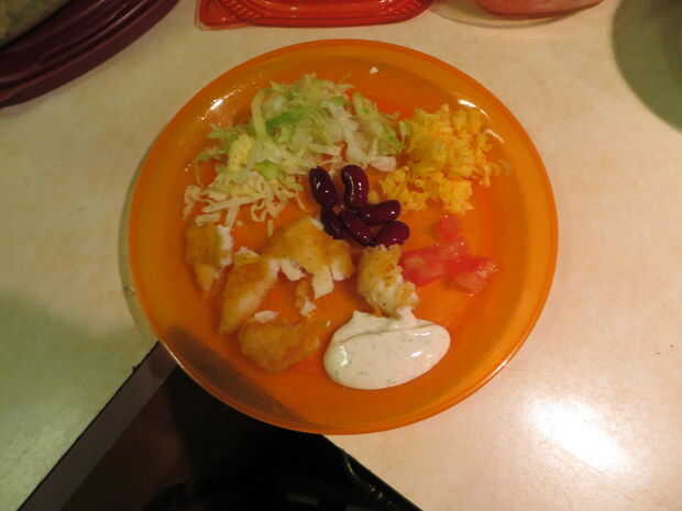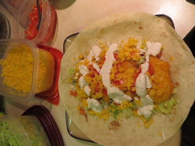 Para los tacos, se acumulan los como usted tiene gusto. Tomar los granos de primera y pones la tortilla y luego tomar el pescado cocido y coloque encima las habas. A continuación añada sus verduras: la lechuga, tomates, cebollas y lugar en los peces. Entonces el ingrediente más importante, la salsa de Taco de pescado! Ponga en gruesa o delgada. Esta es la salsa de las salsas para cualquier pescado blanco. Próxima tapa con queso, enrolle para arriba y disfruta!