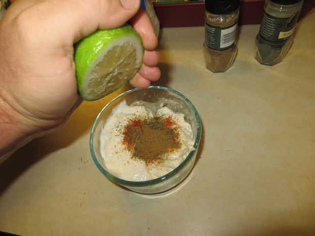 Para la salsa de Taco de pescado importante, comience poniendo incluso partes (uno por uno) de yogurt y mayonesa en un bol. Suelo hacer a 1/2-1 taza de cada uno dependiendo de la cantidad de pienso para alimentar a la gente. A continuación, agregar una cucharadita de comino, una cucharadita de eneldo, una 1/4 cucharadita de pimienta y de Tony ¼. Añadir más pimienta si te gusta la tuya picante! Por último, pero no menos importante, el jugo de limón. Agregar de 1-2 valor de limones de la mano de jugo exprimido. (La izquierda sobre la corteza es buena para cocinar con horno y grill para añadir más sabor a los pescados) Hacer esta salsa a gusto, tan del gusto como ir y a tu gusto!