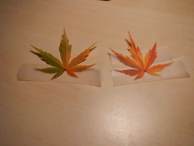 Cortar un trozo de cinta y pegue su hoja, con ningunos pedacitos que se pega hacia fuera. Empezar en la parte inferior, luego cortar otro trozo y poner en el centro. O, si tiene una hoja larga flaca, sólo se podrá montar todo en una hoja.