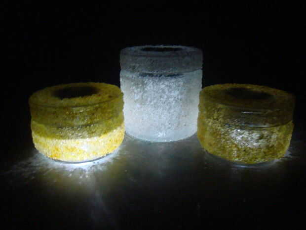 un energía solar LED iluminado tarro de las galletas que recuerdan el tarro del sol diseñado por Tobias Wong."Tarros de mermelada mermelada de tienda, el tarro del sol recoge y almacena el sol para que se puede utilizar por la noche.Pasar alrededor d