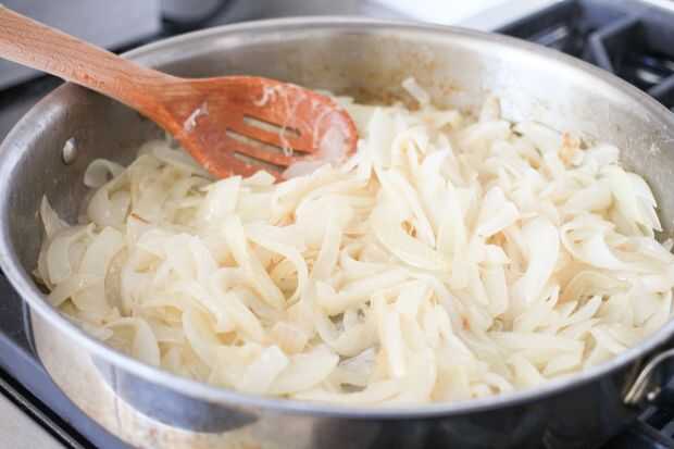 Añadir la cebolla y mezcle alrededor para que cada cebolla está recubierta de grasa. Si no son brillantes, usted necesitará agregar un poco más grasa. Si las cebollas se secan, serán más propensos a quemar y se pegan a la sartén.