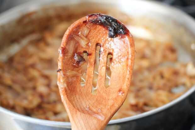 Si vas a mezclar las cebollas y está pegando mal y el fondo de la cacerola es un marrón oscuro o negro, ya tienes tu calor demasiado elevado o no estás revolviendo con frecuencia suficiente. Pero se puede arreglar!