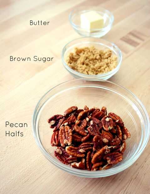 Materiales:1 taza de azúcar morena1/2 taza salada mantequilla (Ablandada)2 cucharadas jarabe de maíz ligero1/2 taza nueces6-12 rebanadas de pan gruesa (1"- 2" de ancho)5 huevos (batidos)1 1/2 taza de leche1 cucharadita de extracto de vainilla1/4