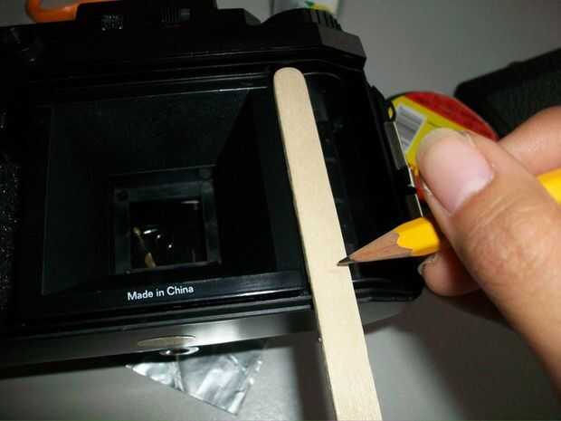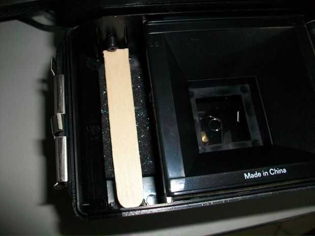 3) Asegúrese de que quede el compartimiento de la película de su cámara. Lo importante es que no juega en el compartimiento de la película. Qué el palito va a hacer principalmente es que va para fijar la película de 35mm en el centro cuando atribuimos la película a él.