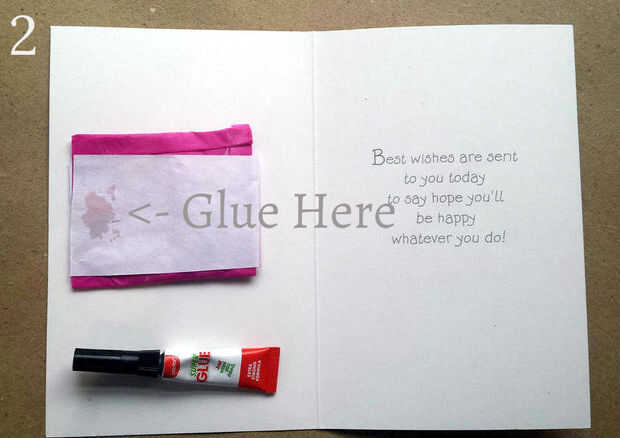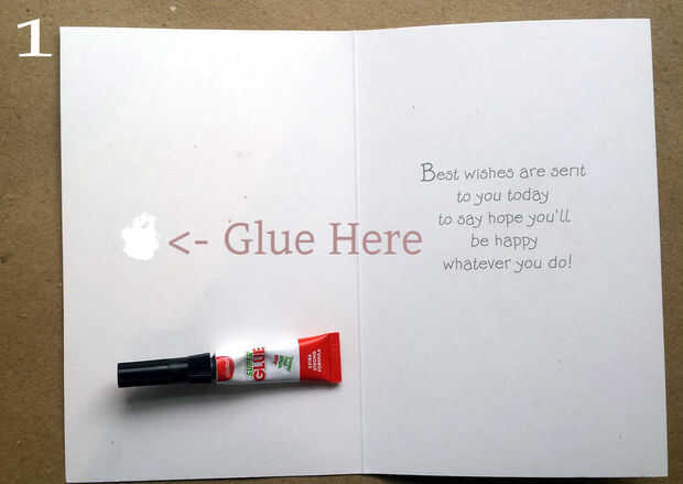 Así que ahora permite conectar la bolsa a la tarjeta de felicitación. Queremos pegar nuestra primavera justo en el centro de la bolsa por lo que no es detectable. Demasiado atrás y la costumbre de resorte funcionan, demasiado lejos hacia adelante y se notará.