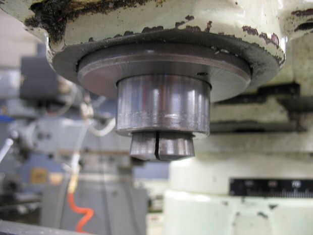 Algunos molinos que una clavija que sobresale en el husillo de diámetro hasta llave en la ranura en el lado de la pinza que le gire en su interior es forma cónica, así que si no quiere al pop en todo el camino, trate de girar alrededor hasta que se desliza fácilmente en todo el camino. Nuestro molino de chorro aquí en menlo park techshop no utiliza uno y aparecerá la pinza derecha en cualquier rotación, pero nuestros molinos mayores hacer y sólo se deslice completamente en cuando se alinea correctamente.