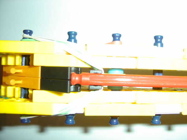 a cargar el arma primer tramo las bandas elásticas alrededor de la pista naranja de empalme en el extremo de la bala y luego páselo de nuevo por lo que su nivel con el bola de empalme conector, asegurándose de que los otros dos conectores de empalme de la bola hacia abajo del gancho la bala en su lugar como se muestra en las fotos. OK ahora estás listo para disparar solo punto lejos de cualquier cosa que podría ser roto es decir. las placas de China, ventanas, espejos, gatos, perros, abuelas etc.etc.