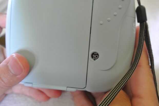 No se asuste cuando sale una cosa negra de plástico. Esto mantiene a la película protegida de la exposición. La ventana ahora lee "10".