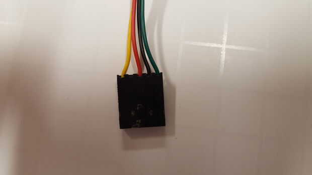 Tome su cableado pin 5 y eliminar uno de los cables del centro. En mi caso pin 2. Rellenar el agujero que falta con pegamento caliente o un palillo de dientes. Esto le dará un patrón unidireccional que se puede utilizar repetidamente de un proyecto a otro para no aprovechar el tapón atrás y prevenir daños en el chip.