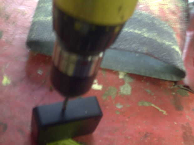 Ahora corte una muesca en el caso con una sierra de mano o dremel para que el conector USB puede encajan muy bien. Después de usted necesita perforar un agujero de 16/64" en el caso de poner el led en el. Entonces usando una dremel corta una abertura para que el interruptor puede caber en el caso.