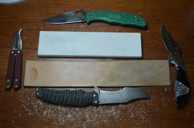 de todos modos, este instructable es principalmente acerca de cómo cargar una correa de cuero, o para aplicar el compuesto. Hay muchos tipos de compuestos, como el diamante de la goma de DMT. Yo sólo uso un óxido de cromo verde, compuesto de sears. Costó alrededor de $3. Básicamente es un bloque de artesano compuesto para pulir.