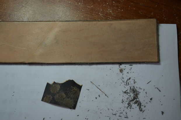 Para limpiar la correa de cuero, yo utilice alcohol ispropyl, frote hacia abajo de la correa de cuero y tratar de eliminar la mayor parte de las cosas. A continuación, utilizar un papel de grano 320 de lija tanto limpiar la correa de cuero, y también dar el compuesto que se adhieren a.