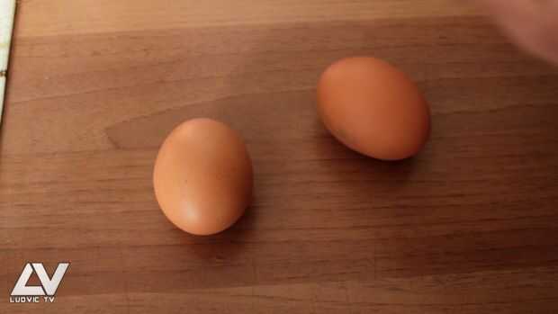 Ponen dos huevos en la mesa, uno cocido y otro no.
