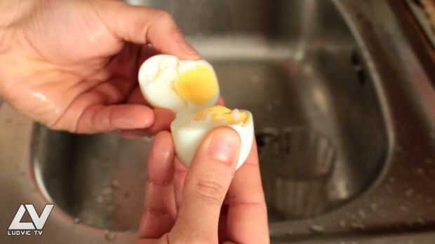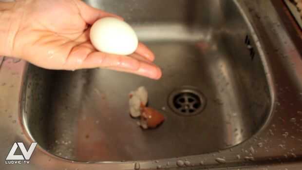 Después de 10 segundos puede se la cáscara del huevo separa realmente fácil, lavar el huevo bajo el agua y.. .just comer!