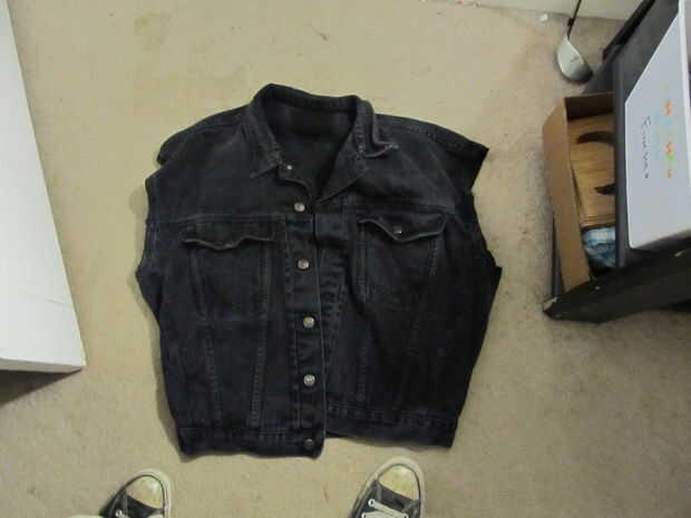 Empecé con una chaqueta de mezclilla negro. (sí, es una chaqueta mujer, pero a quién le importa.)