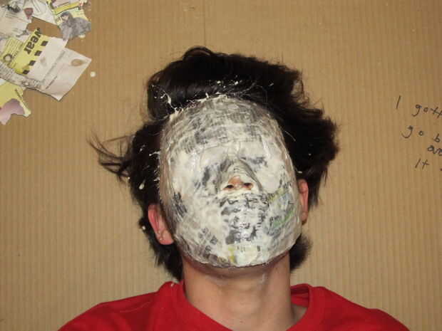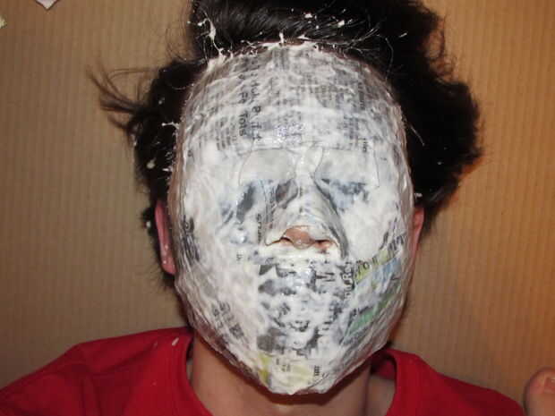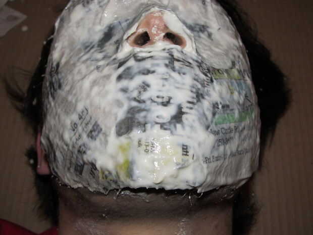 Si no puede hacerlo usted mismo (no debería ser capaz de) tienen un ayudante amigable cubre su cara entera en papel maché para que coincida con el contorno.