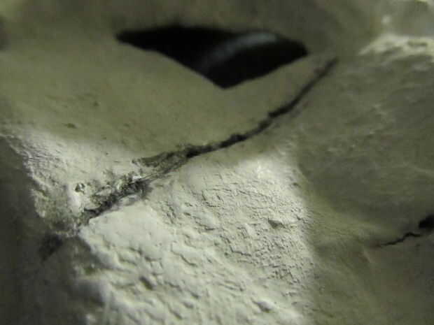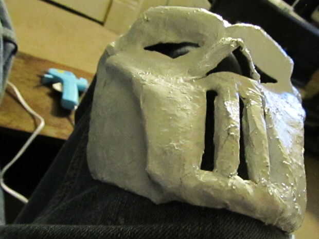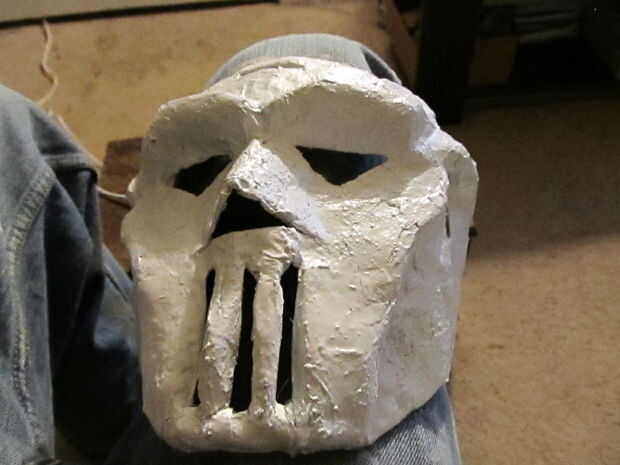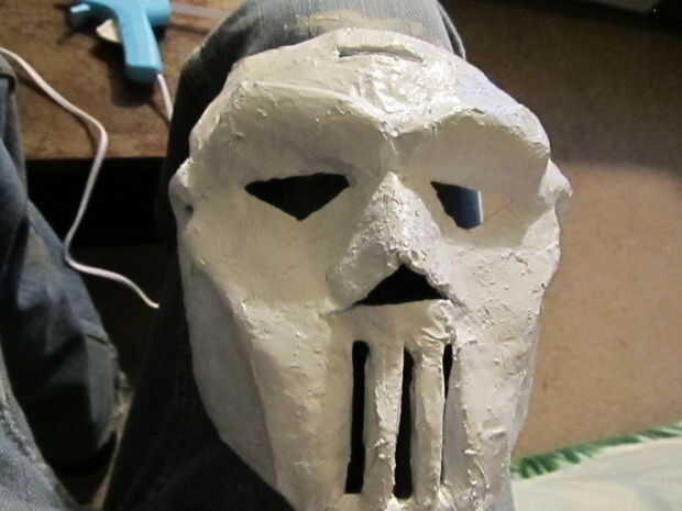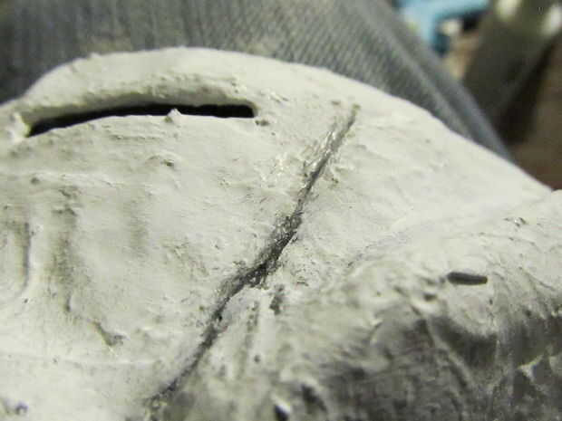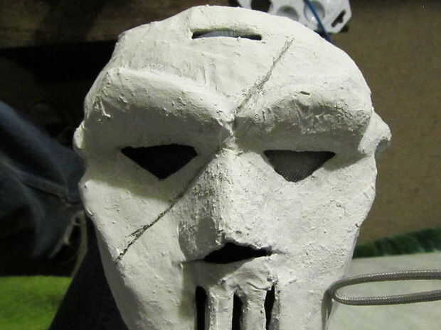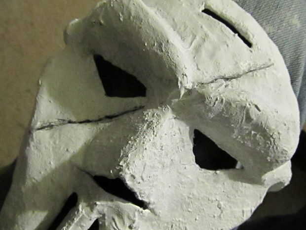 (fueron palabras dramáticas, que sólo se cortan a través de unas capas de papel maché aproximadamente a lo largo de la línea que se muestra en las fotos de abajo para la "cicatriz" en el ojo).
