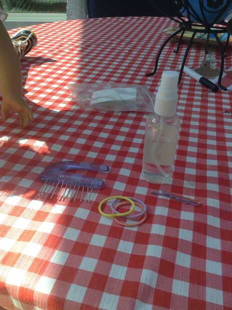 Cepillo chica americana (o si no tienes un pincel usar un nuevo cepillo de dientes) Botella de squirt (con agua) Opcional: Lazos para el cabello elástico Pinzas de pelo Bobby pins