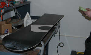es muy sencillo de cera caliente de tu tabla de snowboard. Se necesita una plancha de cera caliente, cera, buff (almohadillas Scotchbrite verde funcionan bien.) y raspador. Usted puede utilizar raspadores de plástico o metales, prefiero el raspador de metal porque no opacarán tan fácil...