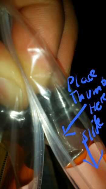 Alinee el plástico broches de bloqueo y deslice el pulgar pinchado hasta el borde opuesto.