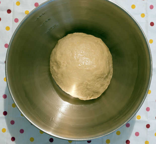 • Amasar sobre una superficie ligeramente enharinada hasta liso y elástico, cerca de 6 a 8 minutos. Colocar en un tazón engrasado, volteándola para engrasar la superficie. Cubierta; Deje levar en lugar cálido y corrientes de aire hasta que doble su tamaño, aproximadamente de 30 a 45 minutos.