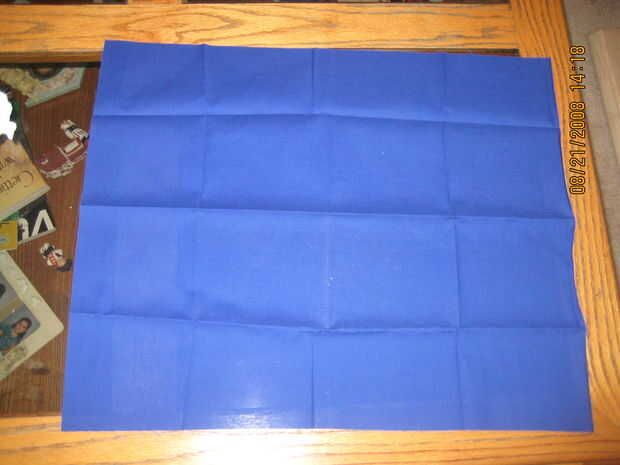 En primer lugar, lo que quieres hacer es poner tu paño y chaqueta a. Luego marque en su chaqueta donde quieras el paño azul que. Luego cortar la tela en tres piezas en el diseño que hiciste en tu chaqueta. Hacer la tela un poco más grande que su diseño. Con poco extra de tela, cortar en pequeñas tiras en el borde. Luego doblar y lo cosa.