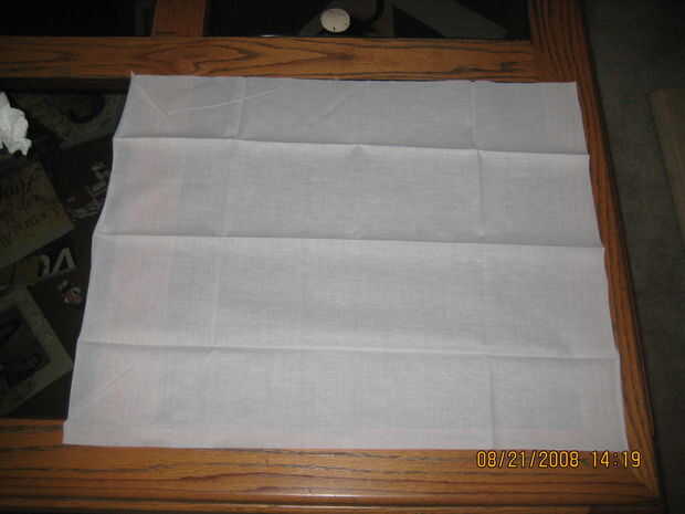 Este paso es similar al paso anterior. Tomar un objeto circular pequeño, como una taza y traza sobre la tela blanca. Con mi paño rojo, como mi madre decidió usar fieltro. Cortar la tela y cosa hasta el hombro izquierdo. Esto es básicamente.