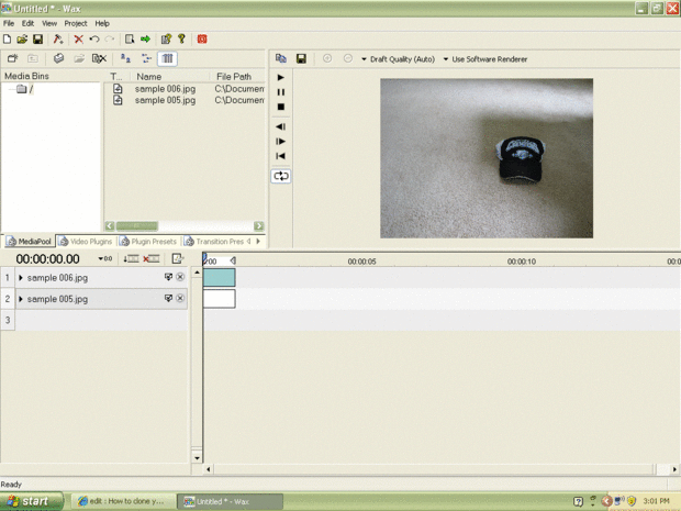 abierta 2.0 de la cera (freeware) y goto proyecto > Agregar archivos una vez que ha insertado sus medios les arrastre la línea de tiempo