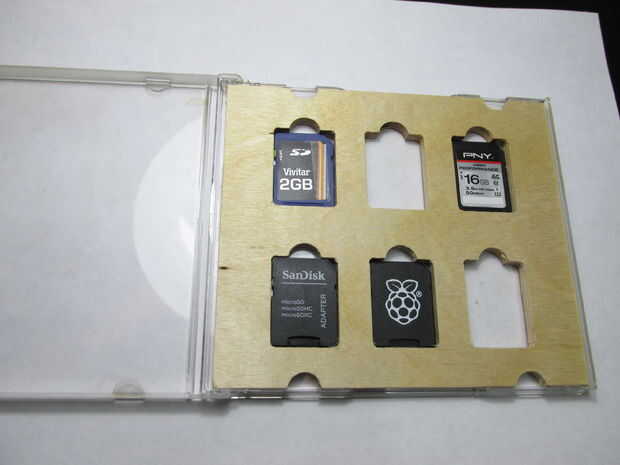 Hacer un soporte para todas las tarjetas SD ahí. Descargar el dibujo de CAD (archivo .eps). Esto será cabido la mayoría (pero no todos casos de CD de tamaño estándar. ¡Buena suerte!