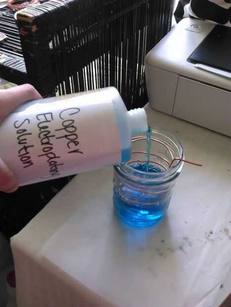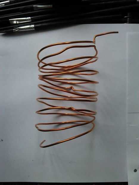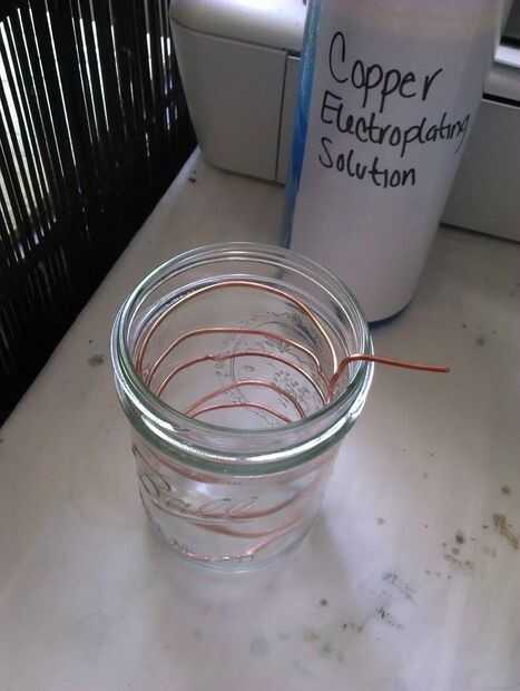 Siguiente que desea preparar su baño galvánico. En primer lugar usted necesita crear una bobina de cobre. Prefiero una bobina sobre un ánodo de hoja porque la bobina le dará una placa incluso todo el camino alrededor de la pieza. He leído que aquellos con una hoja de cobre tienen que mantener su pedazo alrededor de los bancos a cada lado bien plateado. Trabajo con todo lo que tiene, no hay ninguna forma correcta o incorrecta como obtener los resultados deseados. ¿Que todos que realmente queremos, es correcto? Derecho!