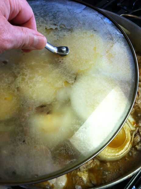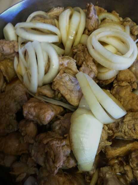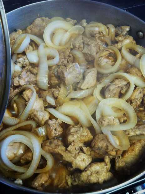Cubrir con una tapa. Reducir el fuego a medio alto durante 10 minutos. Remover y sustituir la tapa por otros 10 minutos. Revolver a la capa de carne y romper para arriba la cebolla. Cubrir y continuar la cocción durante 5-7 minutos cada vez que se revuelve que se dará cuenta de que la olla se oscurece.