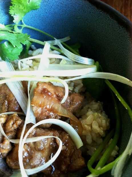 Servir sobre el arroz como se muestra aquí, o con su arroz favorito