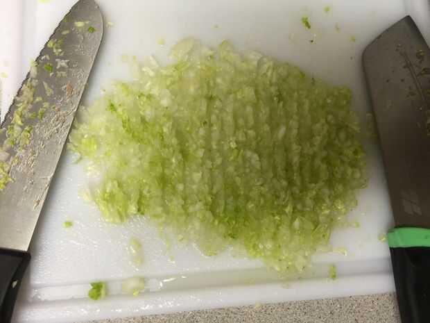 2. ralle el repollo. Es necesario lavar el repollo antes de que destruya. Si usted desea purgar más rápido puede utilizar dos cuchillos al mismo tiempo.