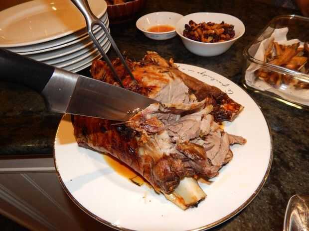 La forma tradicional y más espectacular para servir este plato es tallar en la mesa. Tienen todos los platos calientes a la cabeza de la tabla y tallar para cada persona como quiera.