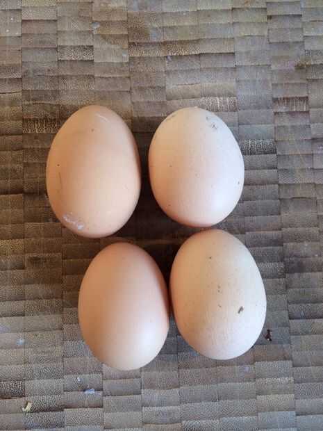 4 huevos - hará cualquier huevo de tamaño. Más fresco mejor. Tengo Pollos (que recomiendo) como huevos frescos son simplemente divinos.