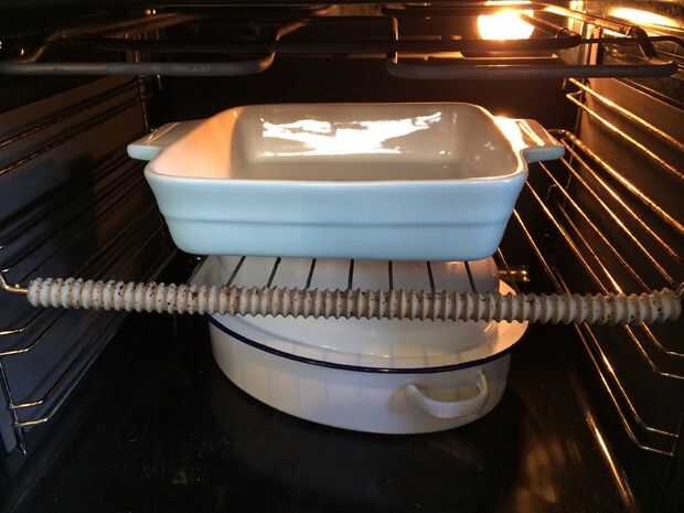 Poner un pomo de goteo en cualquier fuentes de horno de tamaño (sartenes, lata de pastel, plato, moldes o muffin de bandejitas de la hornada). Coloque en un horno precalentado es 230C / ventilador /gas C 210 8.