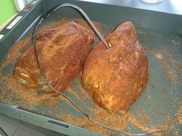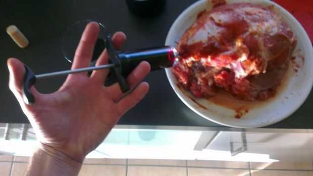 -inyectar la carne con la inyección dejando unos 5 cm de espacio entre cada inyección