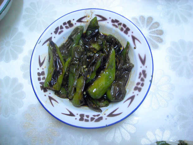 Pimiento cocido en mi ciudad natal, en el noreste de China, se llama "Pimienta de ámbar". Este nombre es muy vivo, porque el pimiento frito se parece mucho a ámbar. Y es un plato muy delicioso que su picante puede abrir su appitate.