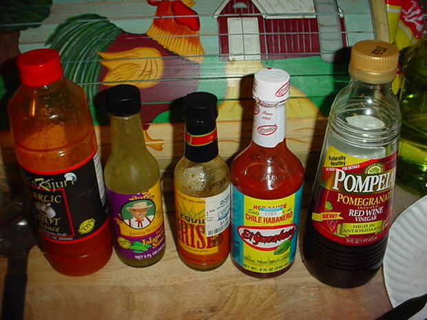 abrir su lata o 2 de descarga de tomates y chiles en la olla, jugo y todo, añadir salsa picante de su preferencia, usar unos buenos toques de cada uno de estos (me gusta caliente) luego mezclar y calentar