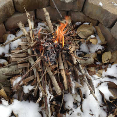 Encender la yesca o firestarter y tienden con cuidado la llama, agregar más inflamación a medida que crece el fuego.