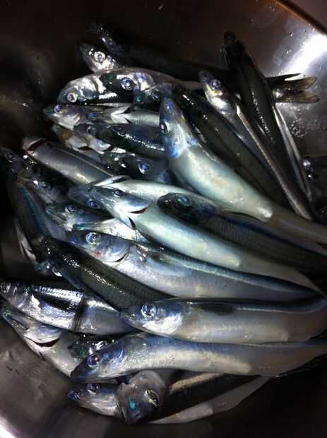 La tripa lo cortando (w cuchillo o tijera) desde la parte inferior de la colina a la pequeña abertura entre las pequeñas aletas situado aproximadamente 2/3 del camino hacia la cola y tirando la cabeza hacia arriba y hacia abajo. La cabeza y las vísceras salen en un barrido limpio, pero este one-stepper puede tomar algo de práctica.