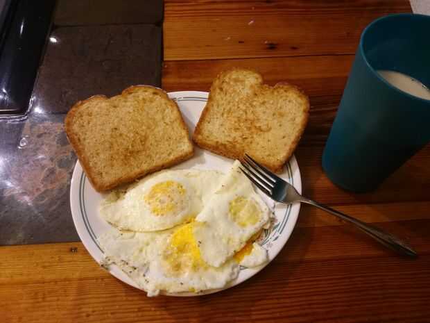 experimento un poco de aburrimiento, estaba considerando hacer un huevo frito de mi sandwich y el pan parecía tan aburrido...Curiosamente este experimento fue un éxito inmediato y realmente más fácil que usar la bandeja por el entusiasmo de la encime
