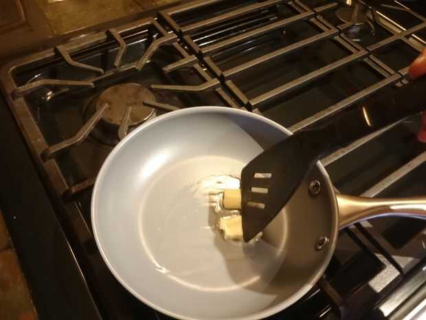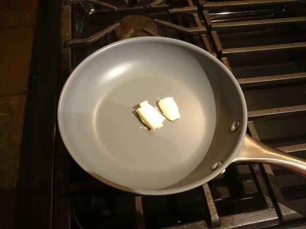 Volver ojo al medio un poco más abajo y derretimiento, transmitido 0,5 cucharadas de mantequilla otra vez. Agregar 1 trozo de pan tostado pan, cocinar durante aprox. 45 segundos o hasta que el fondo esté dorado, luego voltear pedazo de pan, limpie el exceso de mantequilla con pan de retirar de la sartén. Vista a 1/4 y repita para el segundo pedazo de pan (si se desea). Apague ojo agregar pan tostado a la placa y la placa de cubierta.